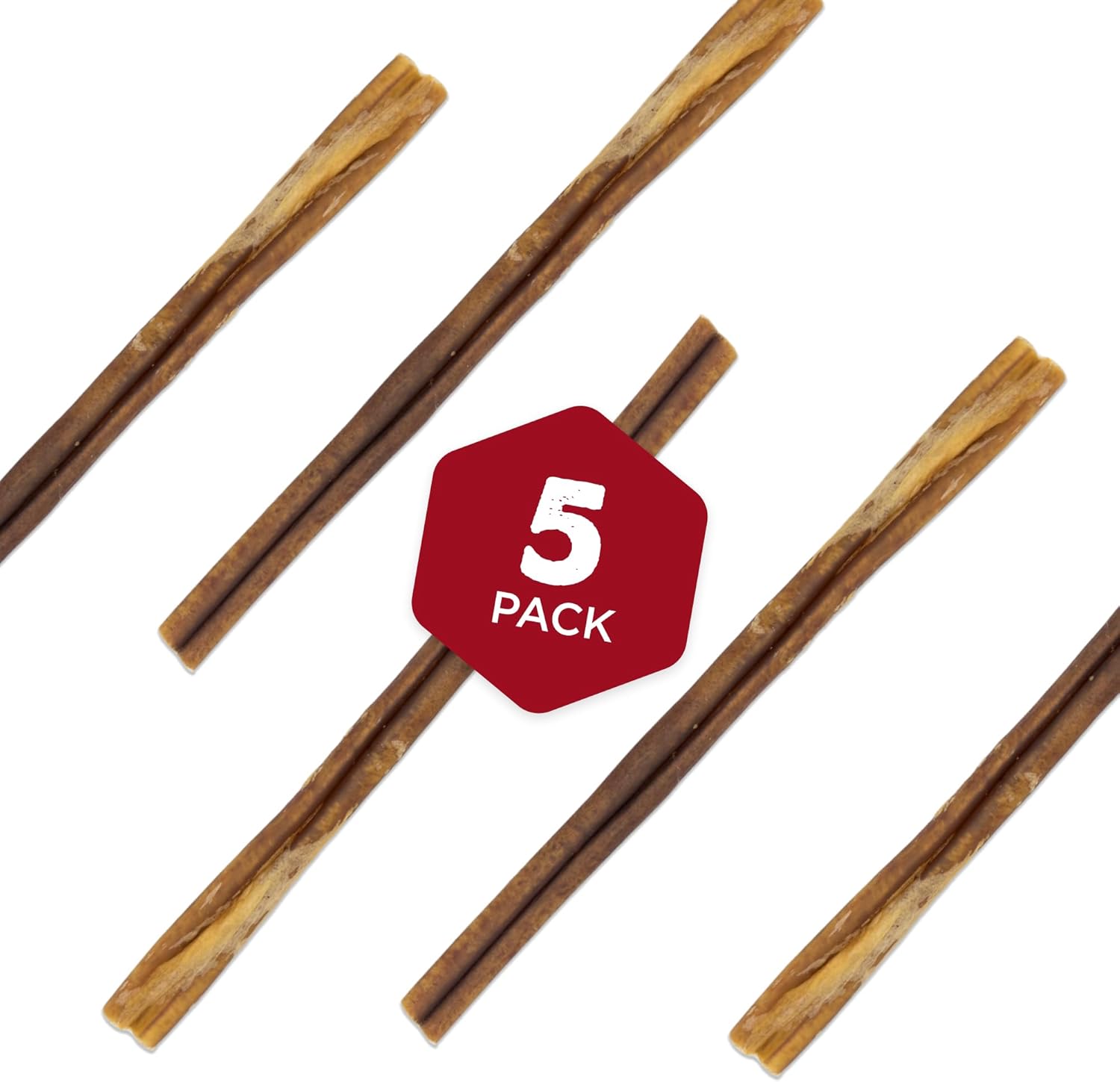 Best Bully Sticks Thick 12 Inch Bully Sticks for Dogs – 5 Count (Pack of 1) – Natural Grass-Fed Beef, Single Ingredient, Grain and Rawhide Free – Large Breeds