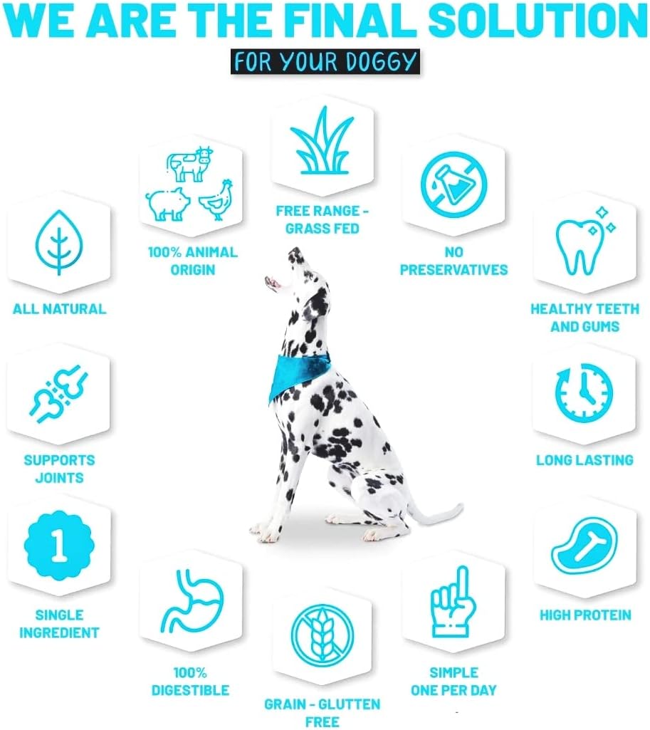 NO CHEMICALS & NO ADDITIVES:Dogscape chew are sustainably sourced and produced from healthy grazing, free range, grass-fed cattle and lamb. Our Dogscape chew contain ZERO Chemicals, Additives, Steroids or other ingredients.