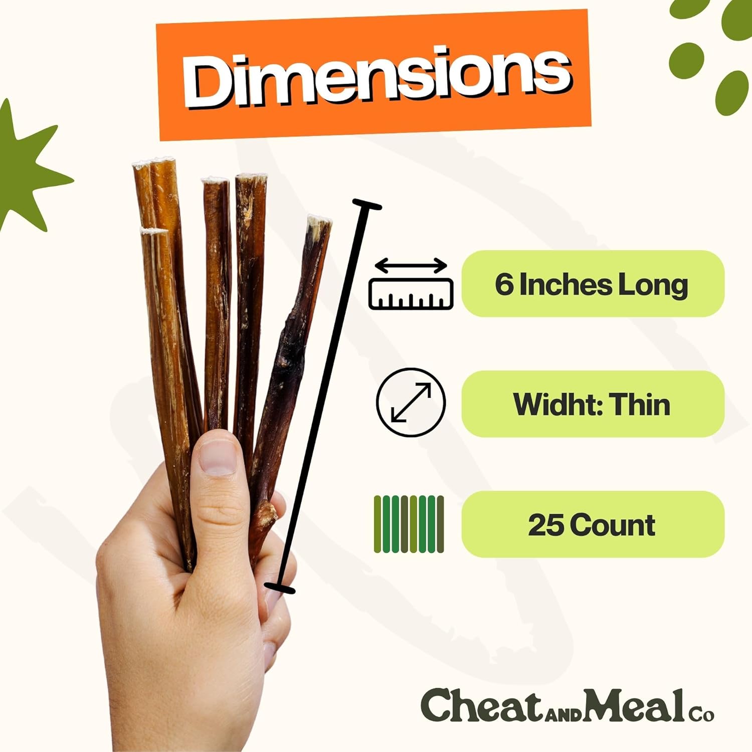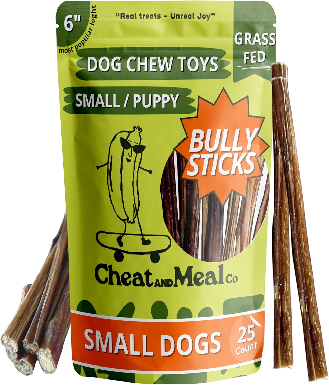 Bully Sticks for Small Dogs, (6 Inch, 25 Count), Small Chew Toy for Puppies and Senior, Natural, Single Ingredient, 100% Beef Pizzle, Long Lasting Treats, Grass Fed, Rawhide-Free