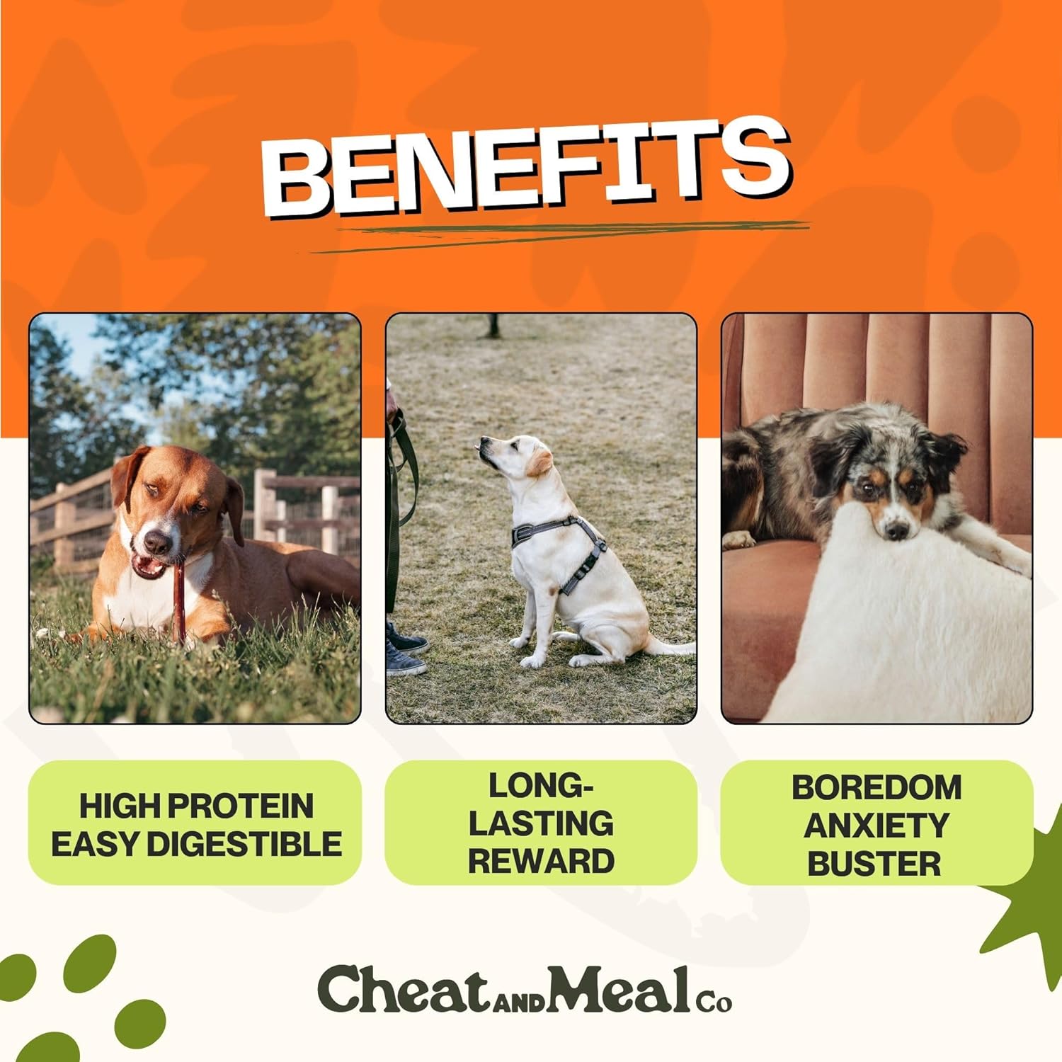 Chew Time for Medium and Large Breeds – Our 6-inch dog chew sticks are ideal for medium and large dogs, offering natural dog chews and dog bones long lasting that support active chewers.