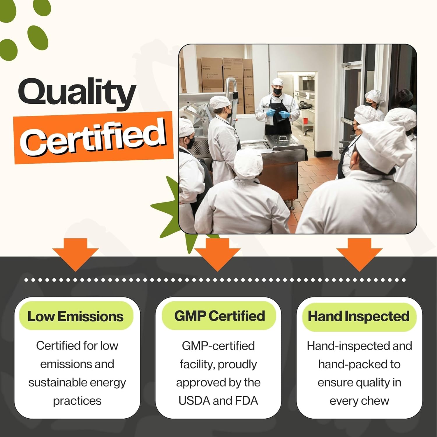 No weird fillers, no mystery meats, no artificial anything. We source premium, grass-fed cattle and turn it into a delicious, single-ingredient chew your dog will obsess over.