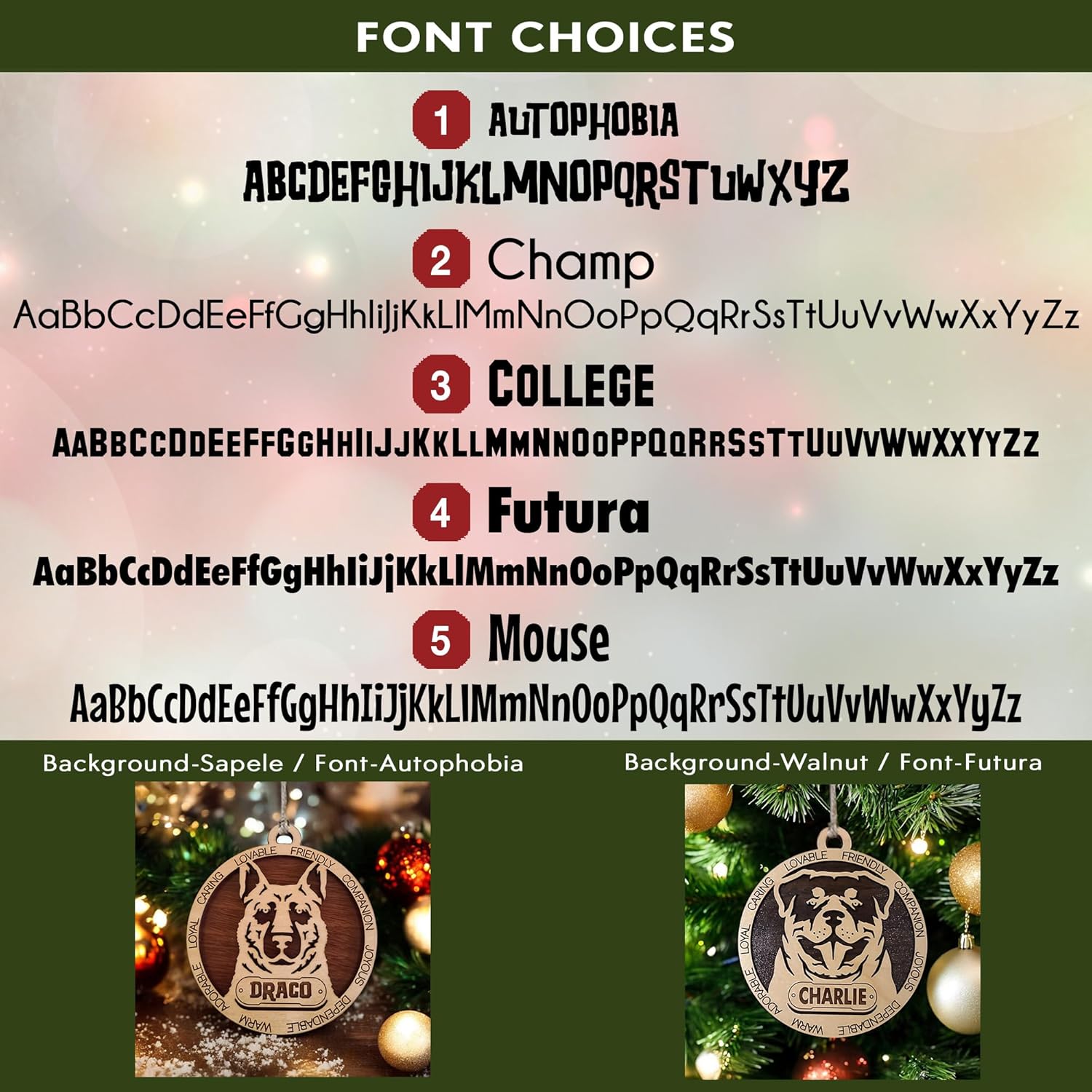 Celebrate the holidays with our beautiful, personalized dog ornament for your Christmas tree. This charming wooden engraved dog ornament is perfect for pet lovers who want to showcase their furry friends during the festive season. Each personalized dog ornament features your cute and unique dog’s breed with a bonus of being able to customize it with their name, making it a unique piece of Christmas tree decor that every pet lover will cherish. Whether you’re celebrating your dog’s first Christmas or looking for the ideal dog mom gift, our custom dog breed ornaments are a heartfelt choice. Surprise a fellow dog lover with this thoughtful dog Christmas gift or treat yourself to a charming addition to your festive decorations.